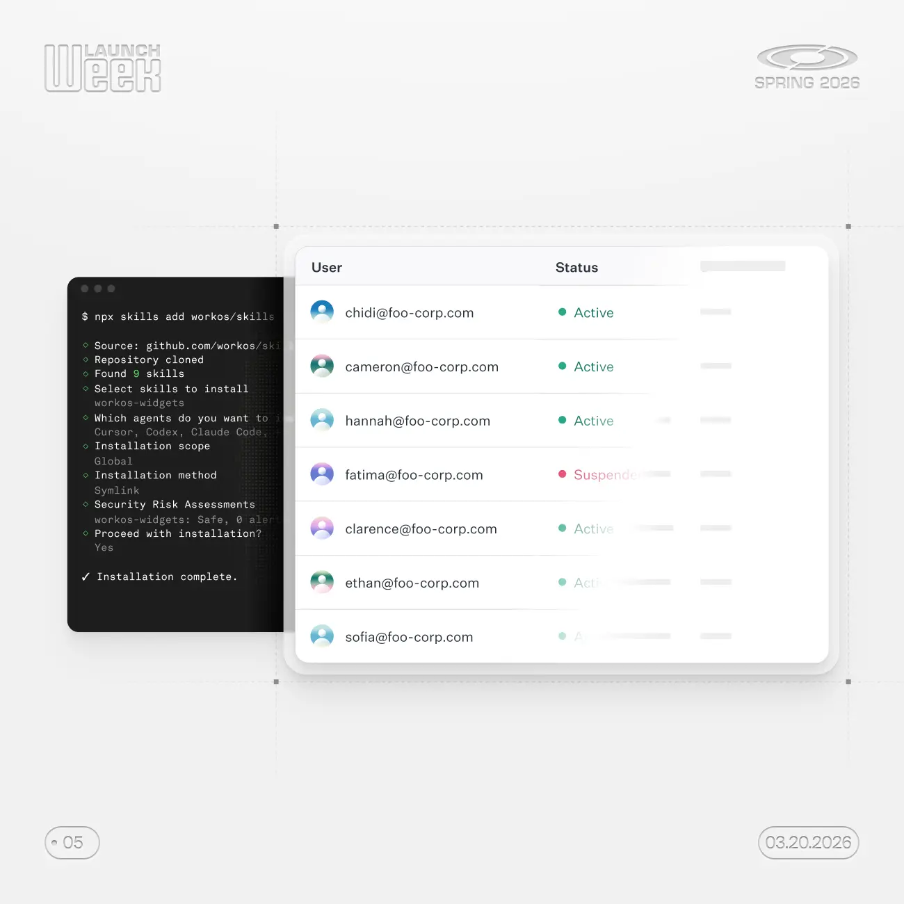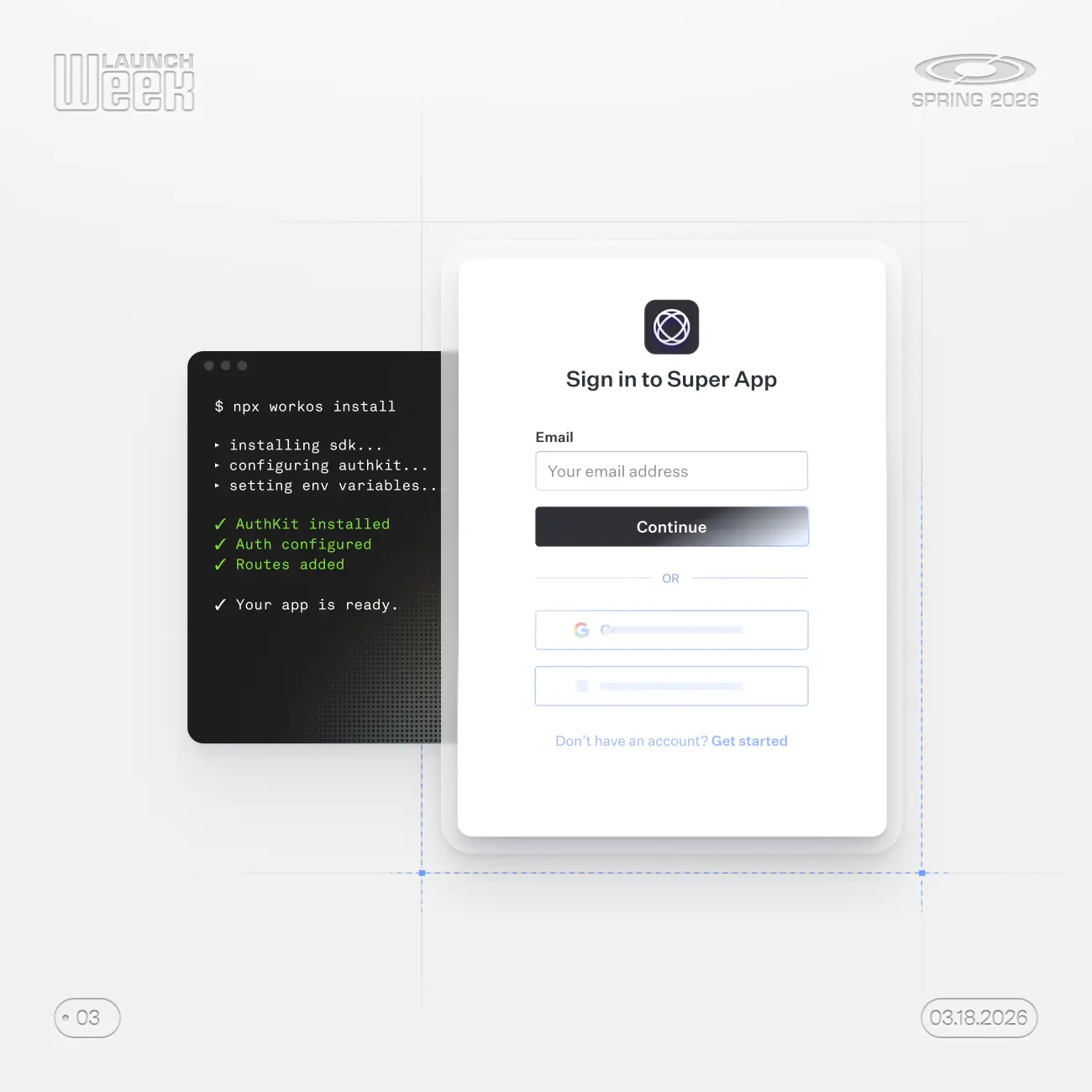 Develop with WorkOS entirely from your terminal, with agent-ready tooling built in.