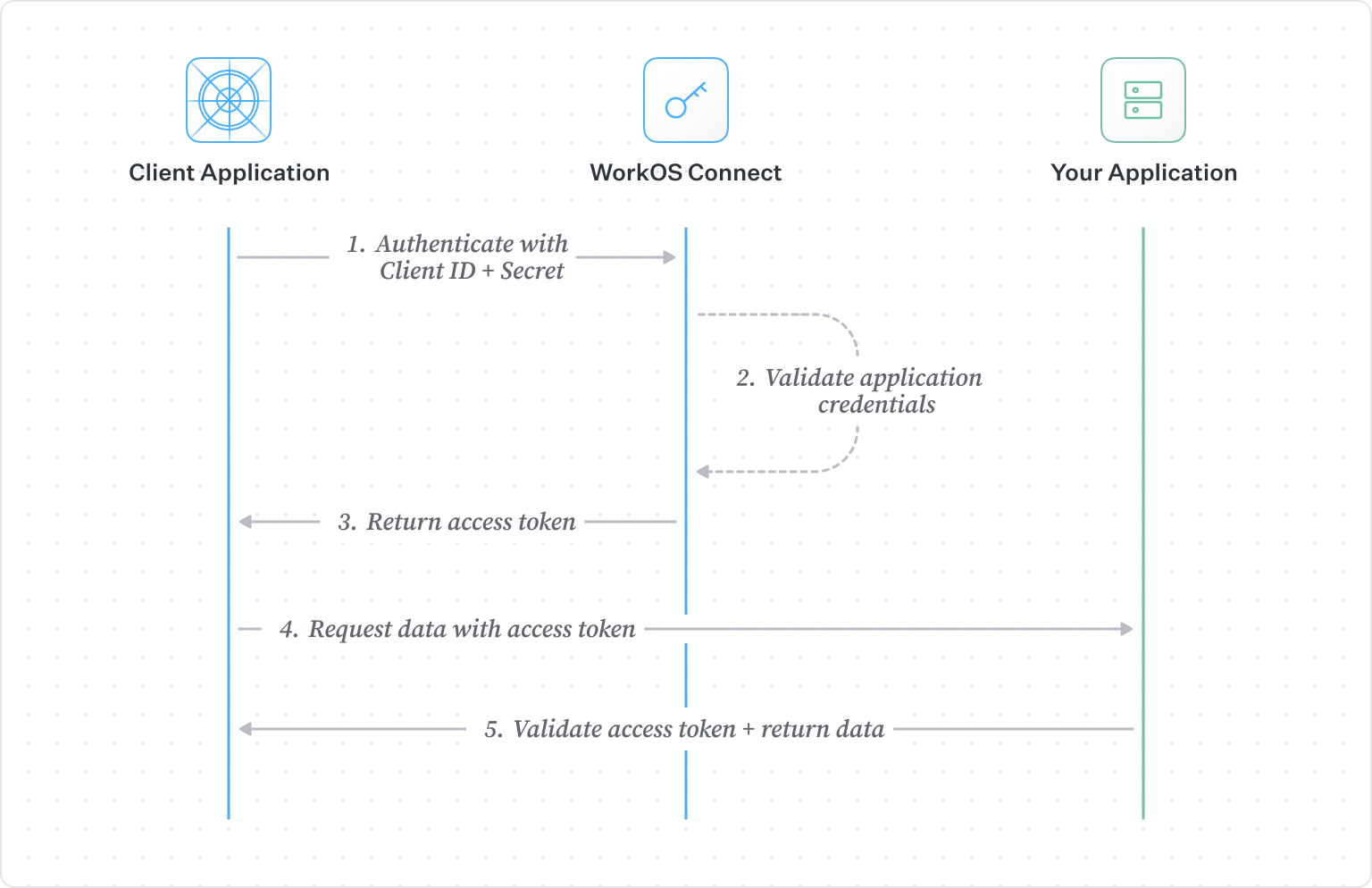 - WorkOS will validate the client id and secret along with any scopes passed in the request