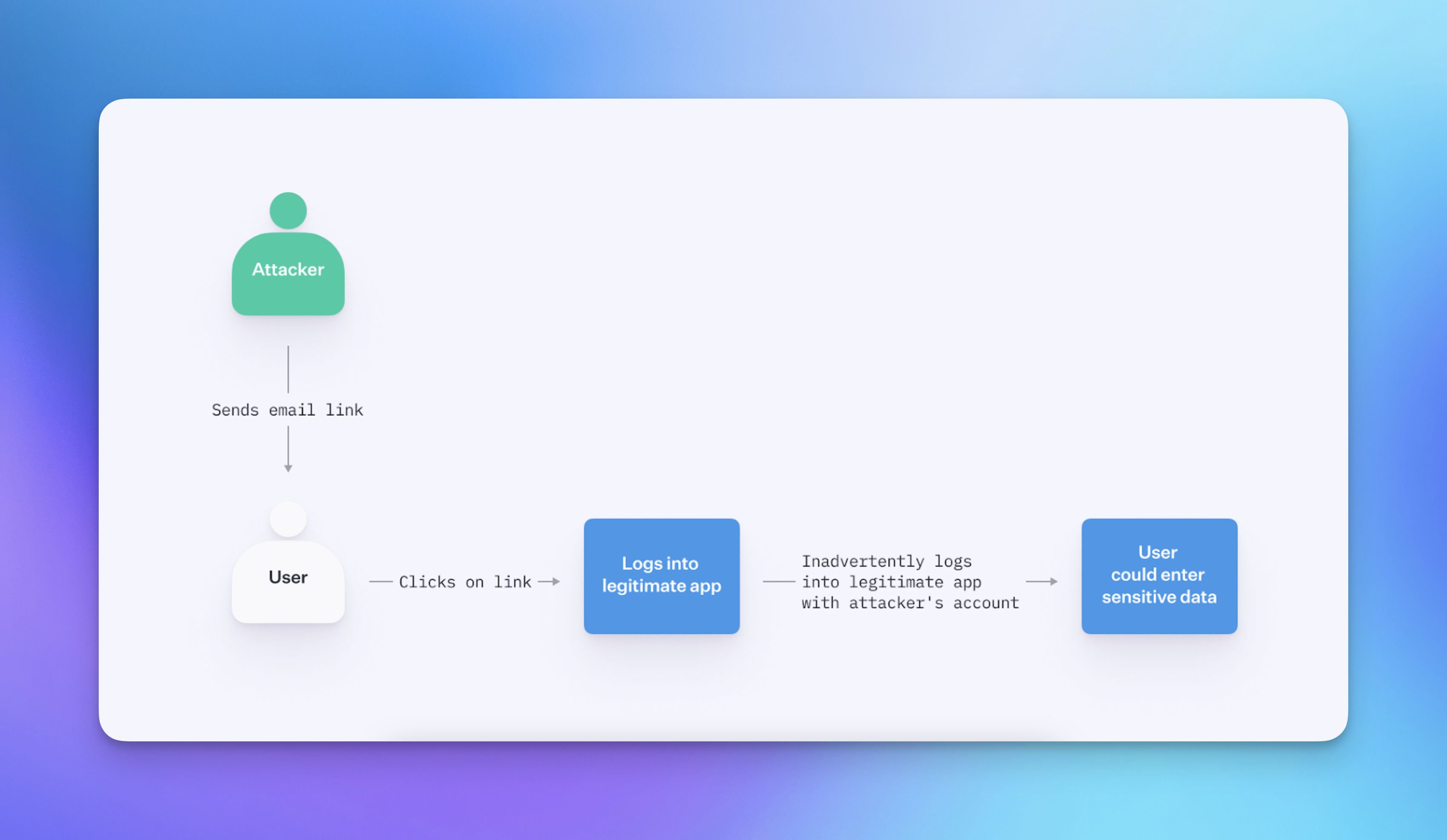 - The application processes the request, thinking the user wants to log in to the attacker's account.